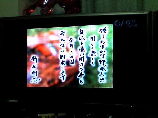 新庄選手の引退セレモニーで新庄選手の過去の映像が色々と流れていました。GAORAの今日の解説が光山さんだったのですが、新庄が阪神時代に敬遠の球をサヨナラヒットした時の捕手が光山さんだったのを実況の方に突っ込まれ、「本当は言いたくなかったんですけど」と言いづらそうにしていたのが印象的でした。