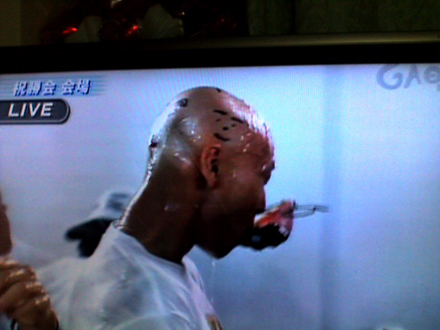 田中幸雄ファンの誰もが待っていた、主将田中幸雄選手がビールかけを楽しむ模様です。あの寡黙な田中幸雄選手が非常に明るくインタビューに答え、終いにはインタビューの女性にビールをかけていました。あんな田中幸雄選手を見るのは初めてです。