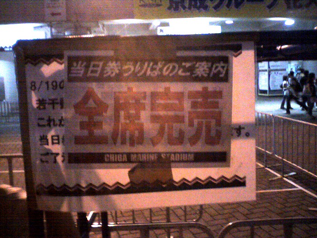 感心したのは千葉マリンスタジアムの職員。明らかに上半身雨に濡れたまま、拡声器で「まだ中止は決定していませんが、今後の天候次第で中止になる可能性がある」旨を説明していました。私を含むいろんな人からのいろんな質問(開門時間は何時なのか、何時ぐらいに中止が決まるのか?等)にも丁寧に応対していました。