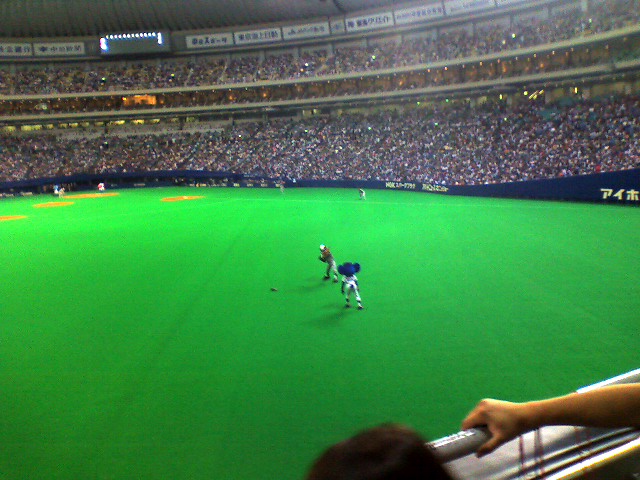 試合前、ドアラとBBがホームラン競争っぽいのやってました、外野からですけどw