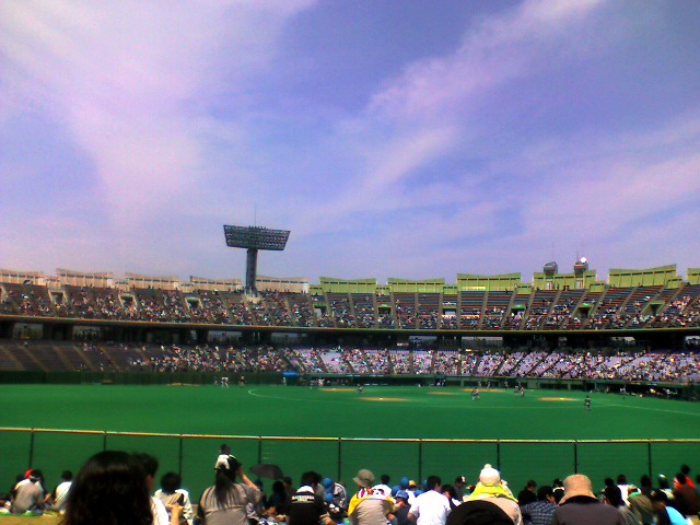まぁ、西武グループが作った球場なので、しょうがないといえばしょうがないのですが、屋根がかかる前の西武ライオンズ球場(西武ドームではありません)に似ています。外野席は天然芝、バックスクリーンの形も殆ど一緒、グラウンドの人工芝の色も似てます。