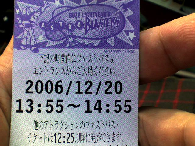 本日は思っていたよりかなり空いていました。10時25分に「バズ・ライトイヤーのアストロブラスター」ファストパスを取得したのですが、時間が3時間半後。ちなみにスタンバイは50分待ちでした。